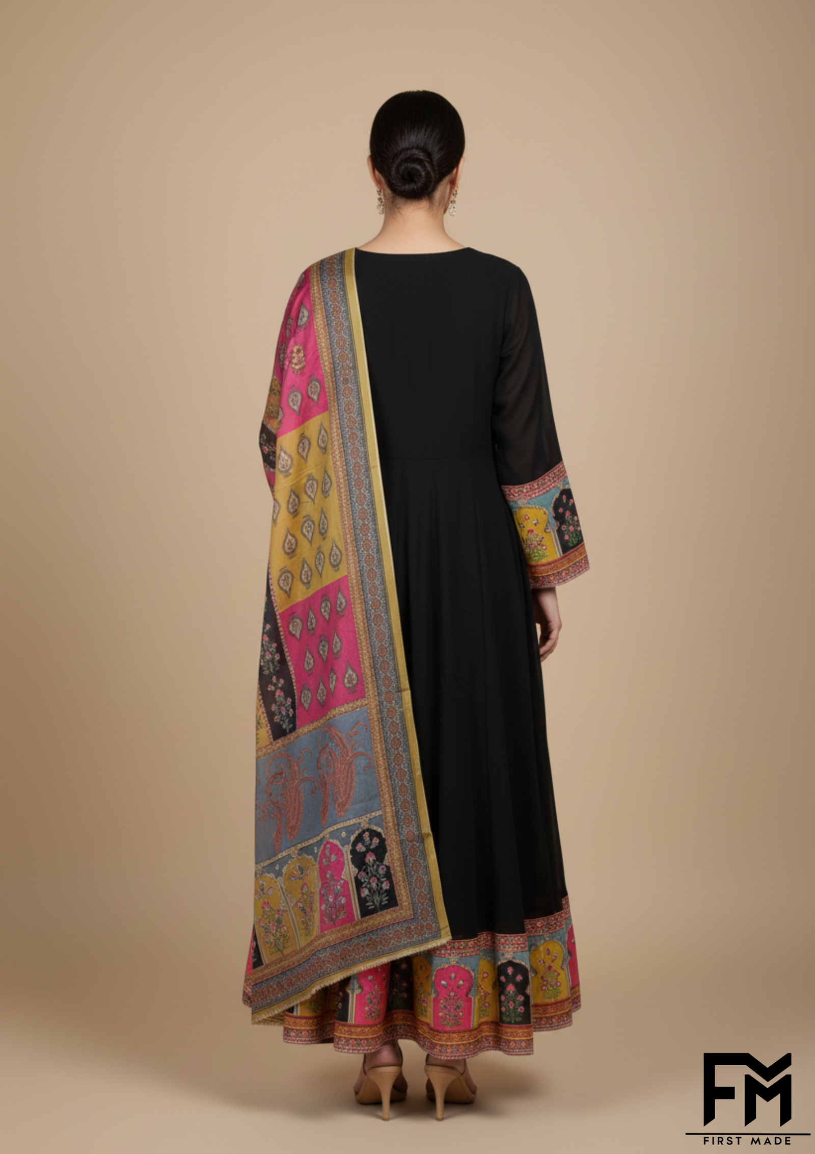 Timeless Black Frock with Artistic Dupatta ||”FM First Made”||